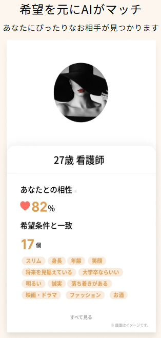 - AIがデータをもとに精度の高い相手を紹介してくれる