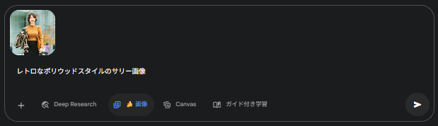 4. 「レトロなポリウッドスタイルのサリー画像」みたいにプロンプトを入力