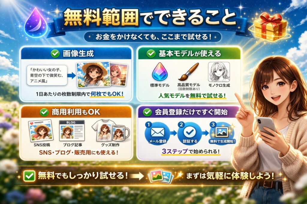 基本的には、画像生成そのものは問題なく試せます。