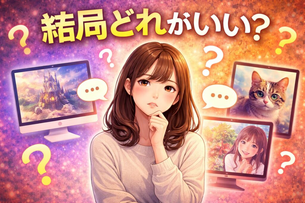 今回は、無料で試しやすい画像生成AIを7つに絞って比較します。