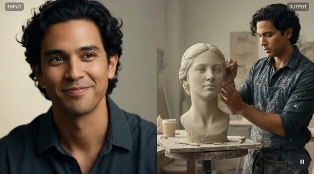 自分やペットの写真をアップロードすると、見た目はそのままで別の衣装を着せたり、違う場所に置いたりできるよ。
